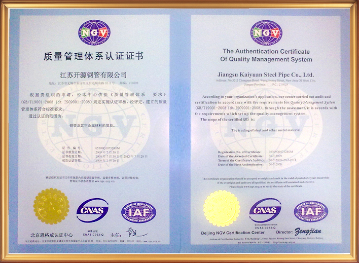湖北新冶钢有限公司无缝钢管特约经销商证书 |